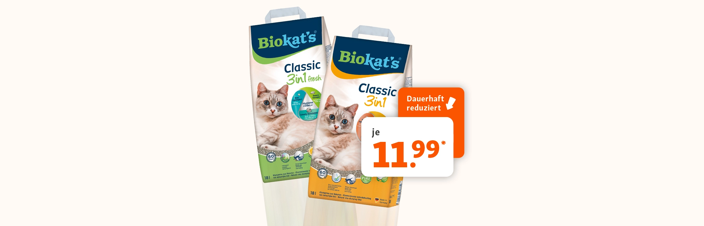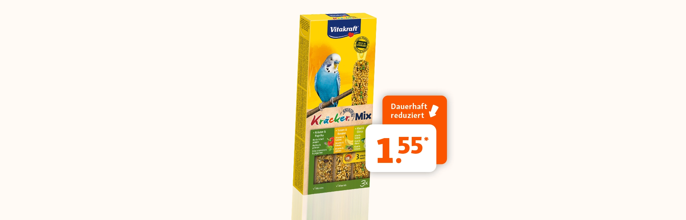 *Dies ist ein Angebot der Fressnapf Tiernahrungs GmbH, Westpreußenstraße 32-38, 47809 Krefeld, für die Fressnapf Märkte der mit ihr verbundenen Unternehmensowie die von selbstständigen Fressnapf Partnern betriebenen Fressnapf Märkte, soweit sie am Angebot teilnehmen (fressnapf.de/storefinder/ oder 02151 411 57 60). Abgabe nur in haushaltsüblichen Mengen. Online können dauerhaft reduzierte Artikel und deren Preise variieren.