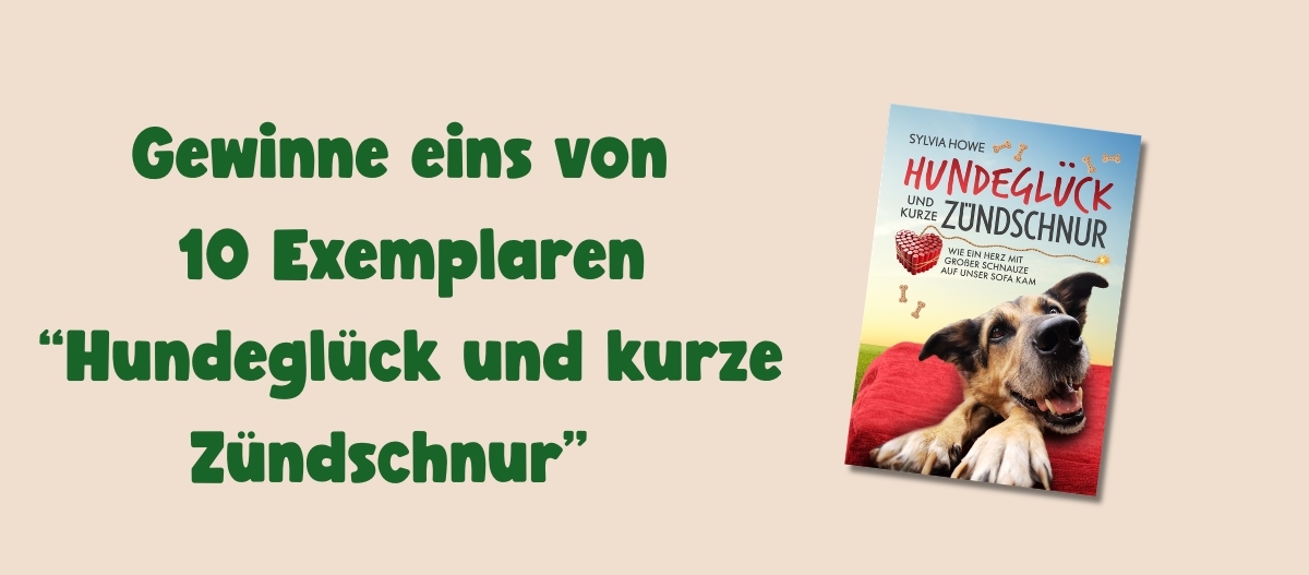 Wir verlosen 10 signierte Exemplare von Hundeglück und kurze Zündschnur, ein Buch über die Liebe zu einem Tierschutzhund. Ein Hund aus dem Tierheim schummelt sich in dein Herz, und ehe du es merkst, gibst du dein Geld für Futter, Liegeplätze und den Tierarzt aus, während du verzückt Videos von deinem schnarchenden Vierbeiner teilst. Sylvia Howe erzählt in ihrem neuen Buch witzig, ehrlich und tierisch schön, wie sie zu einer Hundemama wurde, warum fremde Hunde, Katzen oder Schubkarren manchmal zu Endgegnern werden und wie ein Herz mit großer Schnauze ihr Sofa eroberte. Ein Buch für alle, die Hunde lieben und gerne lachen!