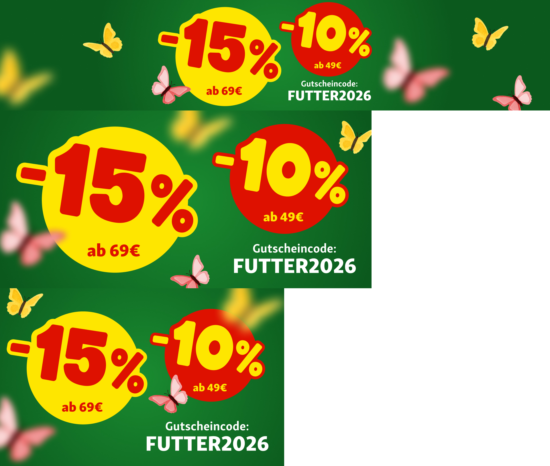 Schnapp dir 10% Rabatt ab 49€ oder 15% Rabatt ab 69€ auf Futter & Snacks**! Dein Rabattcode: FUTTER2026