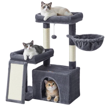 Katzenkratzbaum mit Höhle, Rampe und Körbchen, 2 große Plattformen dunkelgrau