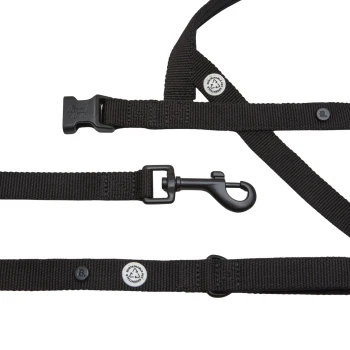 Schwarze Haustierleine mit einem strapazierfähigen Verschluss und reflektierenden Nähten, mit einem Carhartt-Logo-Tag.