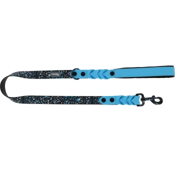 Eine Bengal-Katze, die ein schwarzes Geschirr trägt, sitzt neben einer Verpackung mit der Aufschrift "Tierhood Katzengeschirr 2IN1," die eine Katzensilhouette zeigt.