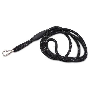 Schwarze Hundeleine mit reflektierenden Nähten und einem stabilen Clip, mit einem kleinen 'liónto' Logoetikett.