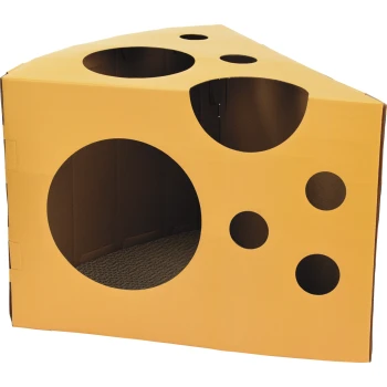 Hellblaues Katzenhaus mit katzenförmigem Eingang, verspielten Katzenillustrationen, Pfotenabdrücken und den Texten „AniOne“ und „Miao“ an den Seiten.