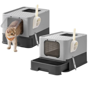Katzentoilette mit Deckel ausziehbares Tablett grau