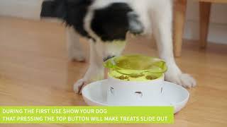 - Interaktiver Futterspender – Hund drückt Knopf, Futter fällt heraus