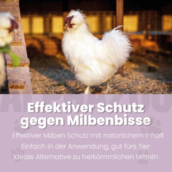 Du möchtest, dass deine Hühner gesund bleiben und sich im Stall rundum wohlfühlen? Dann achte besonders auf Anzeichen von Milbenbefall. Unruhe, häufiges Gefiederputzen oder ein nachlassendes Legeverhalten können Hinweise auf die rote Vogelmilbe oder andere Ektoparasiten sein. Das alphazoo MilbHunter Milbenspray wurde speziell entwickelt, um Milben auf natürliche Weise zu bekämpfen – effektiv, zuverlässig und sanft für deine Tiere.