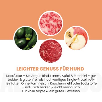 ALPHAZOO DUOPROTEIN ANGUS RIND + LAMM – PREMIUM NASSFUTTER FÜR HUNDE