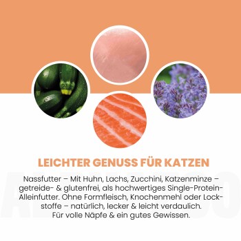 ALPHAZOO Nassfutter Lachs + Huhn 6x200g für Katzen