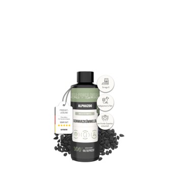 ALPHAZOO Premium Schwarzkümmelöl für Hunde I Echter Schwarzkümmel kaltgepresst