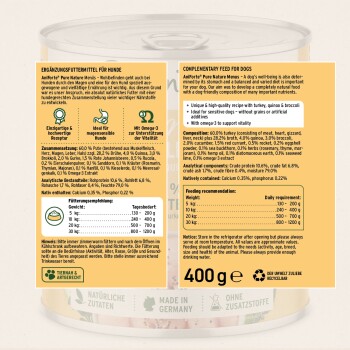 AniForte PureNature GreenfieldTurkey ist besonders leicht und lecker und sorgt mit den anderen AniForte PureNature-Sorten für eine köstliche Abwechslung im Hundenapf.