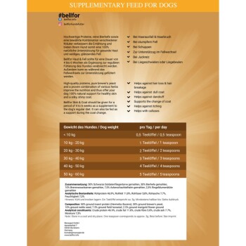- FÜR GLÄNZENDES & GESUNDES FELL – Angereichert mit Bierhefe, wertvollen B-Vitaminen, Aminosäuren und Mineralstoffen hat das Haut und Fell Hund Pulver alles was das Hunde Haar benötigt. Zusätzlich mit Biotin für Hunde, Zink und andere Nährstoffe die nachhaltig Haut und Haar fördern.