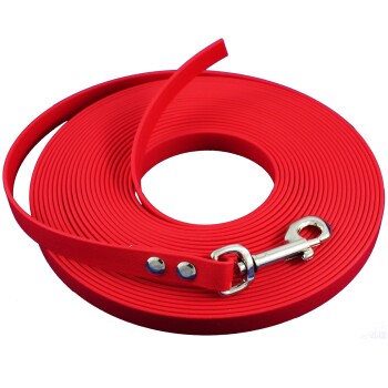 Biothane Schleppleine aus Beta Biothane für Hunde 15-25 kg ohne Handschlaufe 12 mm breit. Die Dicke des Materials beträgt 2.5 mm. Einfach zu reinigen - nur mit Wasser oder bei eingetrocknetem Schmutz mit einer Bürste. Kein Verblassen der Farben, es schimmelt nicht,nimmt keine Feuchtigkeit auf, es haften keine Bakterien daran.