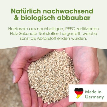 - Hergestellt aus nachwachsenden Holzfasern, biologisch abbaubar