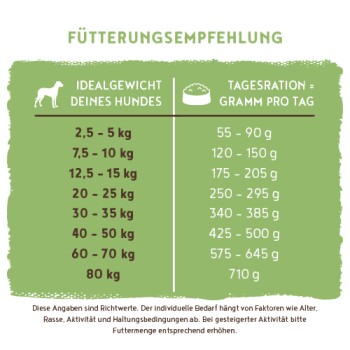 ZusammensetzungReis (37,5 %), Lammprotein (getrocknet, 20 %), Kartoffeln (getrocknet), Geflügelfett, Rübentrockenschnitzel (entzuckert), Reisprotein, Kartoffeleiweiß, Leinsamen, Proteinhydrolysat, Erbsen (getrocknet), Hefe (getrocknet, 0,1 % Mannanoligosaccharide, 0,06 % Beta-Glucane), Fischöl, Cellulose, Natriumchlorid, Kaliumchlorid, Grünlippmuscheln (getrocknet, 0,1 %), Chicorée (getrocknet).