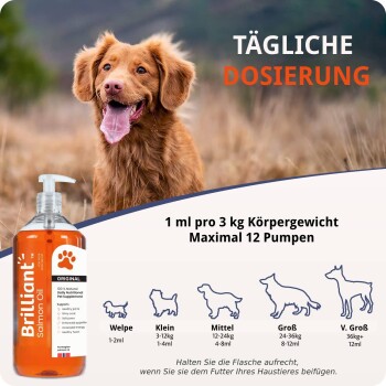 Brilliant Petcare Hofseth Biocare Brilliant Lachsöl für Hunde, Katzen, Welpen, Frettchen und Haustiere – Reines Omega-3, -6 & -9 Fischöl-Nahrungsergänzungsmittel | Hilft bei juckender Haut, Gelenkpflege, Herzgesundheit & natürlichem Fellglanz (1000 ml)
