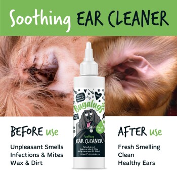 - Sanfte Reinigung für empfindliche Ohren: Der Bugalugs Dog Ear Cleaner ist eine sanfte und beruhigende Ohrreinigungslösung, die hilft, Ohrgerüche zu reduzieren, Juckreiz zu lindern und Wachs sowie Schmutz zu entfernen