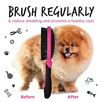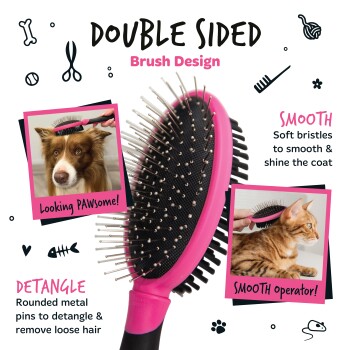 - Universal & vielseitig: Zwei Seiten – Nylonbürste glättet und bringt Glanz, Metalldraht-Seite mit abgerundeten Spitzen entfernt sanft Knoten und lose Unterwolle bei Hunden und Katzen aller Felltypen