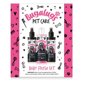 - Drei Baby‑Fresh-Bestseller im Set: Enthält Shampoo (250 ml), Detangling Spray (200 ml) und Cologne (200 ml) – perfekt abgestimmt für ein rundum gepflegtes Finish in frischem Babypuderduft