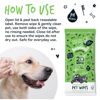 - Sanfte Reinigung ohne Duftstoffe Die Bugalugs Fragrance Free Pet Wipes sind ideal für empfindliche Haustiere. Sie enthalten eine natürliche Formel mit Kamille, Aloe Vera, Sheabutter, Gurke und Vitamin E, die sanft reinigt und pflegt. Diese Tücher sind frei von Parabenen, Sulfaten und Alkohol