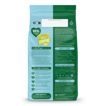 - Optimale Entwicklung & Wachstum – reich an Protein und essentiellen Aminosäuren, um Muskelaufbau, Entwicklung und Energiebedarf junger und zwergiger Kaninchen gezielt zu unterstützen.