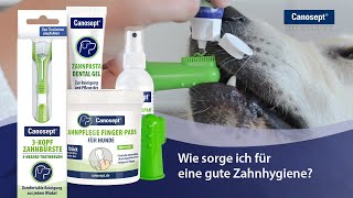 Das Canosept Zahnpasta Dental Gel unterstützt die regelmäßige Zahnreinigung, hilft Plaque zu entfernen und sorgt für eine verbesserte Maulhygiene für ausgewachsene Hunde und Welpen ab 4 Monaten. Die wohlschmeckende Rezeptur mit Pfefferminzöl erfrischt den Atem deines Hundes und hilft Zahnstein, Karies und Maulgeruch zu verhindern. Ideal anwendbar mit der Canosept 3-Kopf-Zahnbürste und der Canosept Finger-Bürste. - Canosept Zahnpflege Spray:
