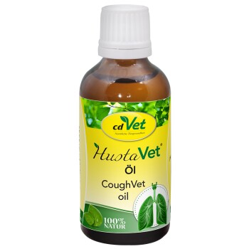 In der Natur nehmen Tiere auch Kräuter und Blätter auf, deren Inhaltsstoffe oft reich an ätherischen Ölen sind. Die in ätherischen Ölen enthaltenen Wirkstoffe sind insbesondere für die Kondition der Atemwege, aber auch der Verdauung von Bedeutung, und haben so auch einen positiven Einfluss auf die Abwehrkräfte. Die einzigartige Kombination wohltuender Pflanzen- und Kräuteröle macht HustaVet Öl zur idealen Grundlage einer auf die Bedürfnisse atemwegsempfindlicher Tiere abgestimmten Futterergänzung.