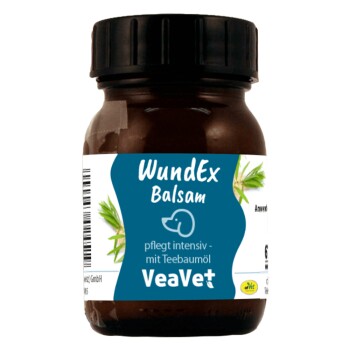 Für empfindliche Haut, die besondere Aufmerksamkeit braucht: VeaVet WundEx Balsam unterstützt die natürliche Regeneration von wunden oder irritierten Hautstellen, und spendet langanhaltende Feuchtigkeit - für ein gepflegtes, gesundes Hautgefühl.