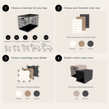 - Hundematte "District 70 SHERPA Crate mat": Entscheide dich für eine komfortable Fleece-Boxmatte, erhältlich in 3 neutralen Farben, oder für eine wasserabweisende Boxmatte.