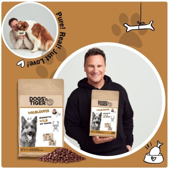Für den perfekten Mix sorgt außerdem eine Portion Gemüse & natürliche Zutaten wie geschälte Erbsen, Erbsenstärke, Kartoffelstärke und Rote-Bete-Fruchtfleisch. Und weil wir bei Dogs’n Tiger gern noch eine Schippe drauflegen, steckt auch eine Extraportion Wald-Superfood-Vibes drin: frische Heidelbeeren, frischer Apfel und frischer Pfeffer – klein, aber richtig gut.