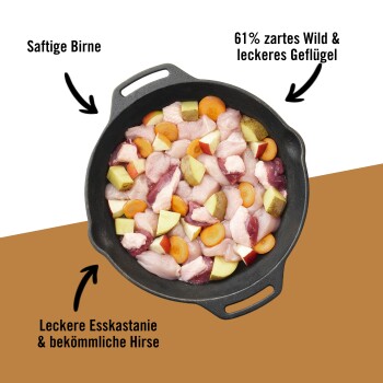 - Hochwertiges und Getreidefreies Hunde Nassfutter mit einem Fleischanteil an 61% frischem Wild & Geflügel