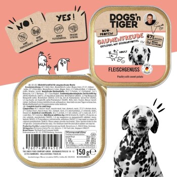 - Hochwertiges und Getreidefreies Hunde Nassfutter mit einem Fleischanteil an 67% frischem Geflügel & Süßkartoffel