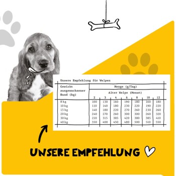 - Trockenfutter in bester Qualität speziell für Welpen ab 8 Wochen