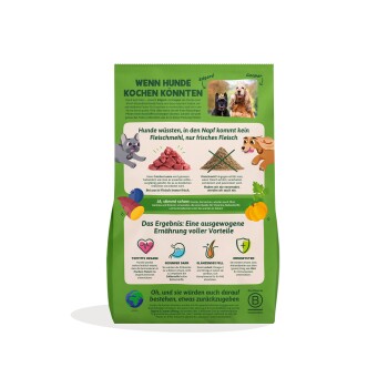 Ein natürliches, schmackhaftes Hundefutter, mit dem Sie, Ihre Haustiere und unser Planet sich wohl fühlen.