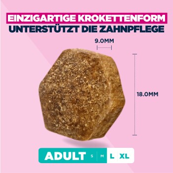 - Einzigartig geformte Kroketten und das DentaDefense-Zahnpflegesystem sorgen für saubere und gesunde Zähne