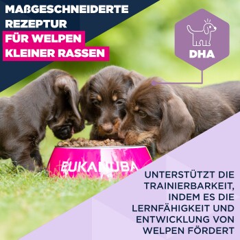 EUKANUBA Life Care ist das ideale Premiumfutter für deinen kleinen Welpen. Speziell entwickelt für Welpen kleiner Rassen von 1 bis 12 Monaten, unterstützt es Wachstum und Entwicklung optimal. Mit viel frischem Huhn und ausgewählten Zutaten bietet es eine maßgeschneiderte Ernährung. Die enthaltene DHA fördert die Lernfähigkeit in den frühen Lebensphasen. Kalzium hilft bei der Entwicklung starker Knochen.