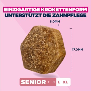 - Einzigartig geformte Kroketten und das DentaDefense-Zahnpflegesystem sorgen für saubere und gesunde Zähne