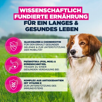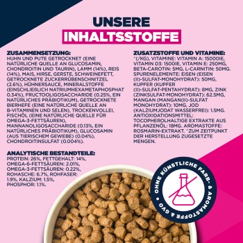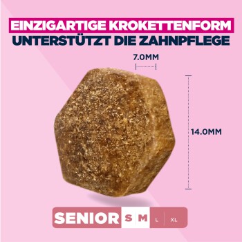 - Einzigartig geformte Kroketten und das DentaDefense-Zahnpflegesystem sorgen für saubere und gesunde Zähne