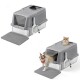 FEANDREA 2er Edelstahl Katzentoilette XL mit Deckel 2 Eingängen grau
