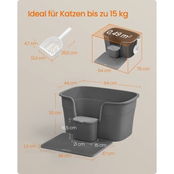 【EXTRA GROSSER RAUM】Super geeignet für große Katzen! Mit den Außenmaßen 64 x 44 x 33 cm bietet das extragroße Katzenklo genügend Platz, um sich bequem zu drehen und zu scharren. Es ist perfekt für Katzen bis zu 15 kg, z. B. Ragdoll- und Maine-Coon-Katzen