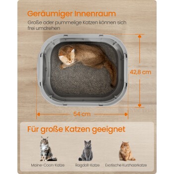 【PERFEKT FÜR GROSSE UND DICKE KATZEN】Die Innengröße des Klos beträgt 50 x 40,5 x 34,5 cm und bietet somit viel Platz für große Rassen wie Ragdoll-Katzen und Maine-Coon-Katzen. Wie sieht es mit der Oberseite aus? Keine Sorge, sie kann bis zu 15 kg tragen