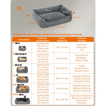 Produkte mit Nähten können um 2-3 cm von den von uns genannten Maßen abweichen. Bitte messen Sie Ihren Vierbeiner, um sicherzustellen, dass dieses Hundekörbchen seiner Größe entspricht.