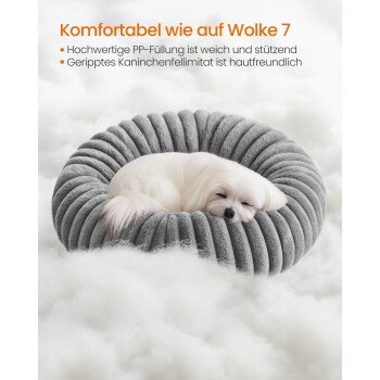 - Weiches, geripptes Kaninchenfellimitat: Bietet Ihrem Vierbeiner einen besonders luxuriösen und komfortablen Ruheplatz.