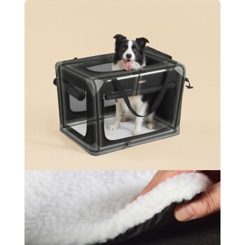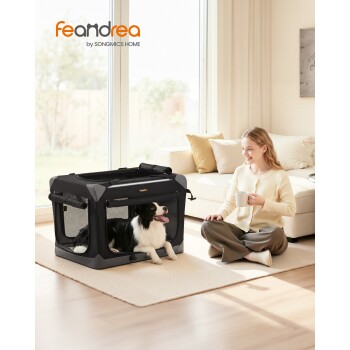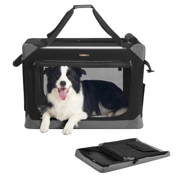 FEANDREA Hundebox faltbar, tragbar, Oxford-Gewebe, 4 Türen, mit Griffen und Seitenfach M-L L
