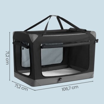 - Wir empfehlen, Ihren Hund vor der ersten Nutzung behutsam an die Transportbox zu gewöhnen, damit er sie mit etwas Positivem verknüpft und sich darin wohlfühlt.