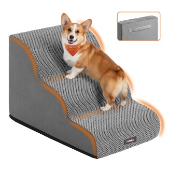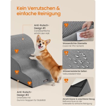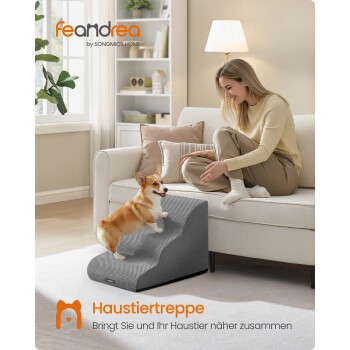 FEANDREA Hundetreppe, 2/3/4Stufen, Waffelcord, wasserdicht, rutschfest, abnehmbarer waschbarer Bezug L