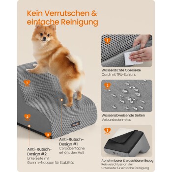 FEANDREA Hundetreppe, 2/3/4Stufen, Waffelcord, wasserdicht, rutschfest, abnehmbarer waschbarer Bezug M