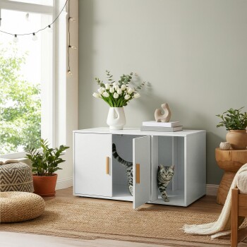 Mehr Privatsphäre, weniger Geruch: Dank der Türen mit Magnetverschlüssen bietet dieser Katzenschrank für Katzentoilette einen privaten Ort, an dem sich Ihre Katze sicher fühlt, um ihre Notdurft zu verrichten. Zudem hält er unangenehme Gerüche im Zaum