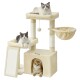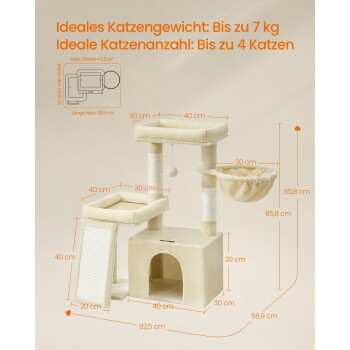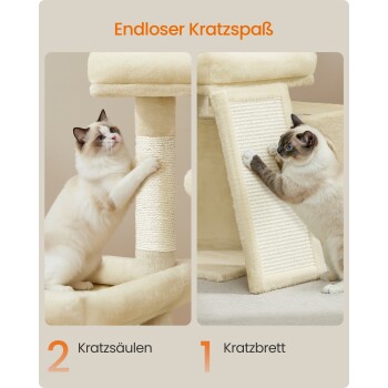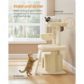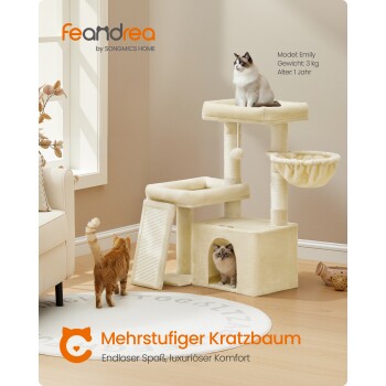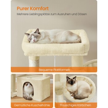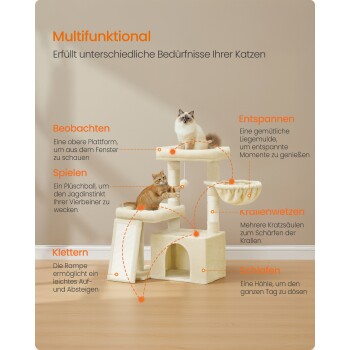 FEANDREA Katzenkratzbaum mit Höhle, Rampe und Körbchen, 2 große Plattformen beige