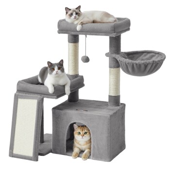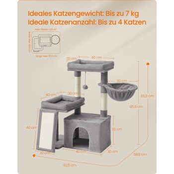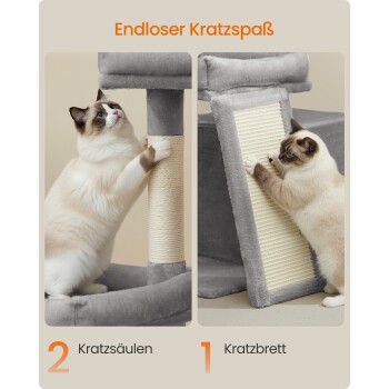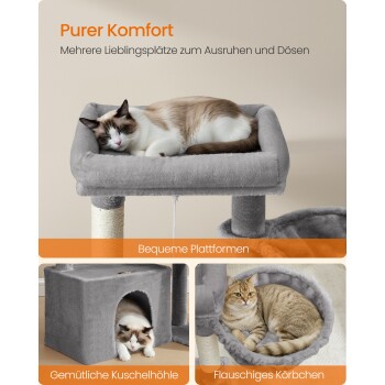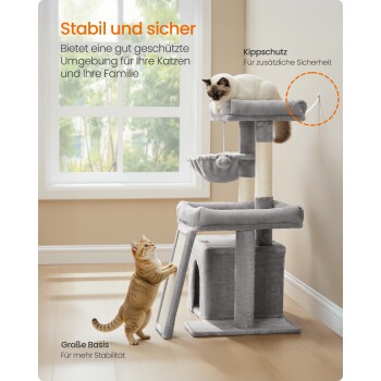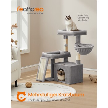 FEANDREA Katzenkratzbaum mit Höhle, Rampe und Körbchen, 2 große Plattformen hellgrau